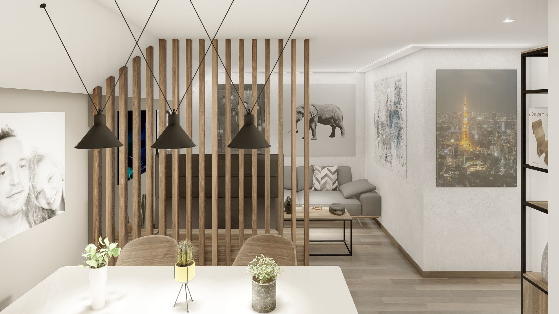 Diseño de interior de cocina y salón para un Àtico en Deltebre, elaborado con las herramientas del modelado y renderizado 3D